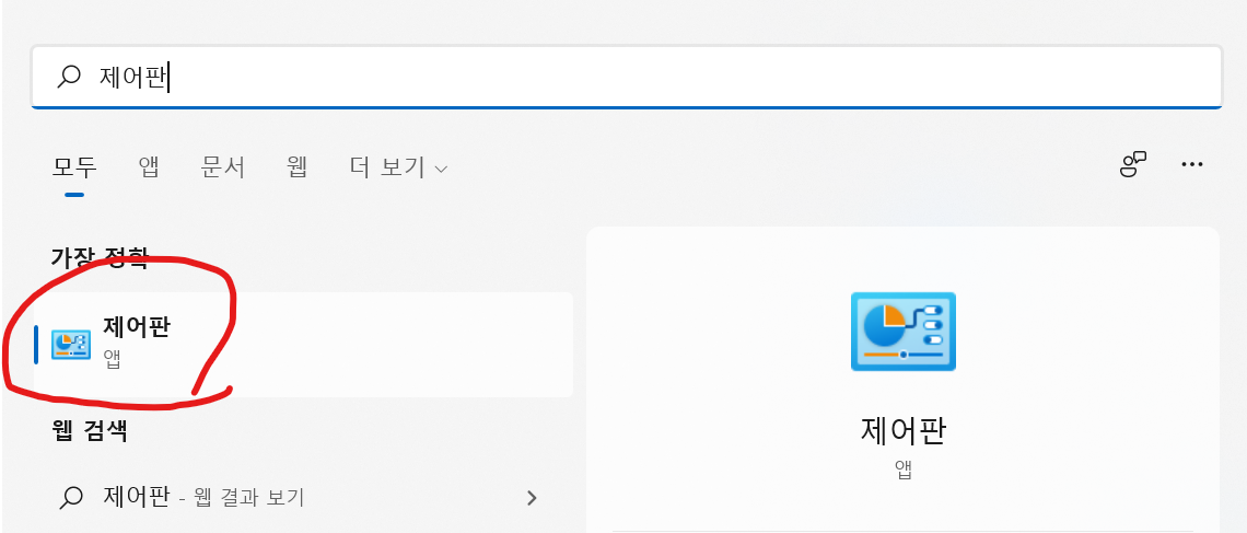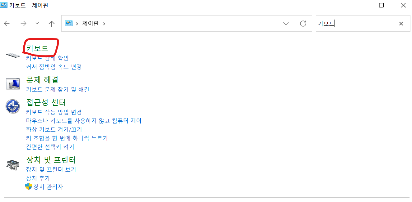 키보드 설정하기 위해서 제어판으로 들어가자.