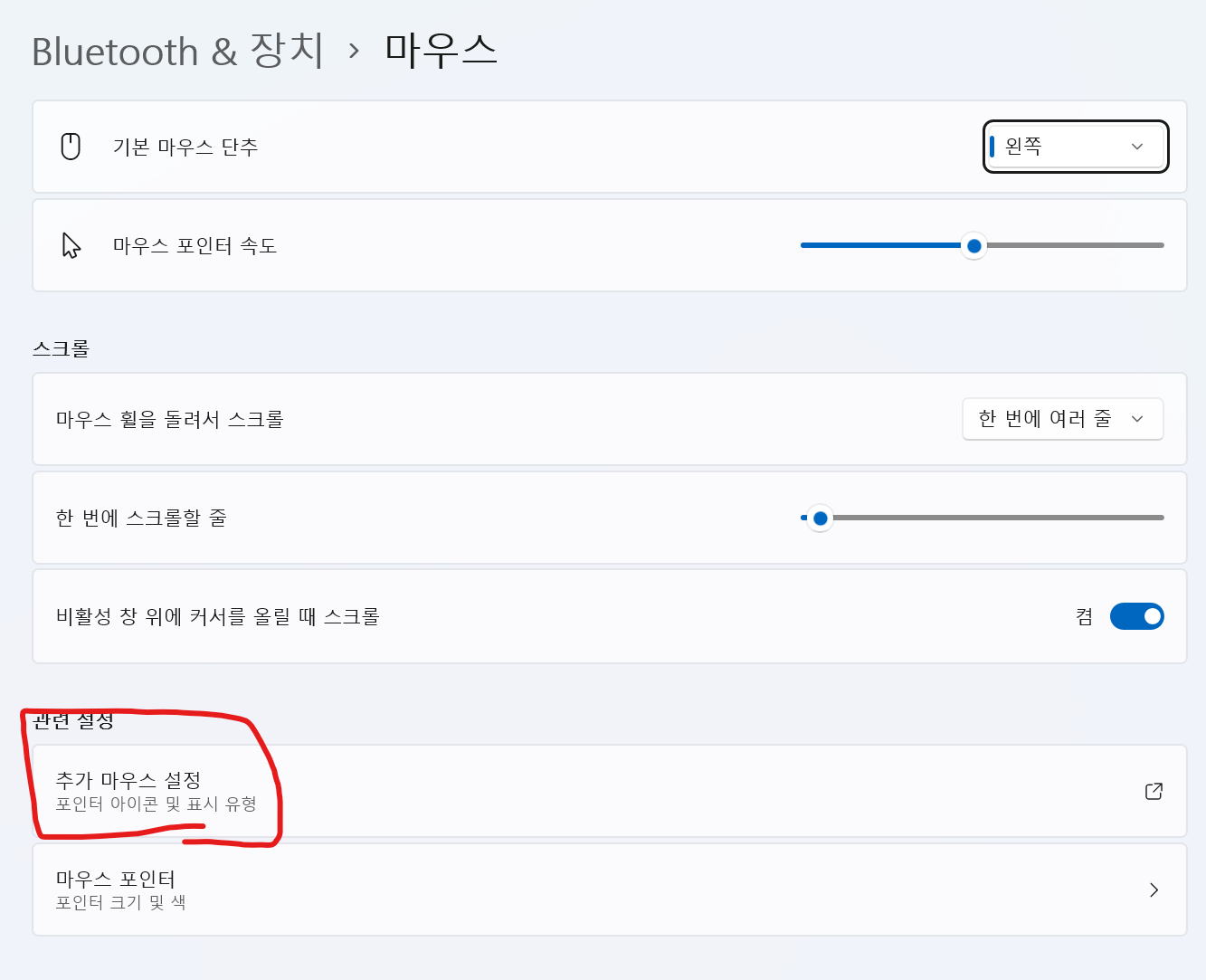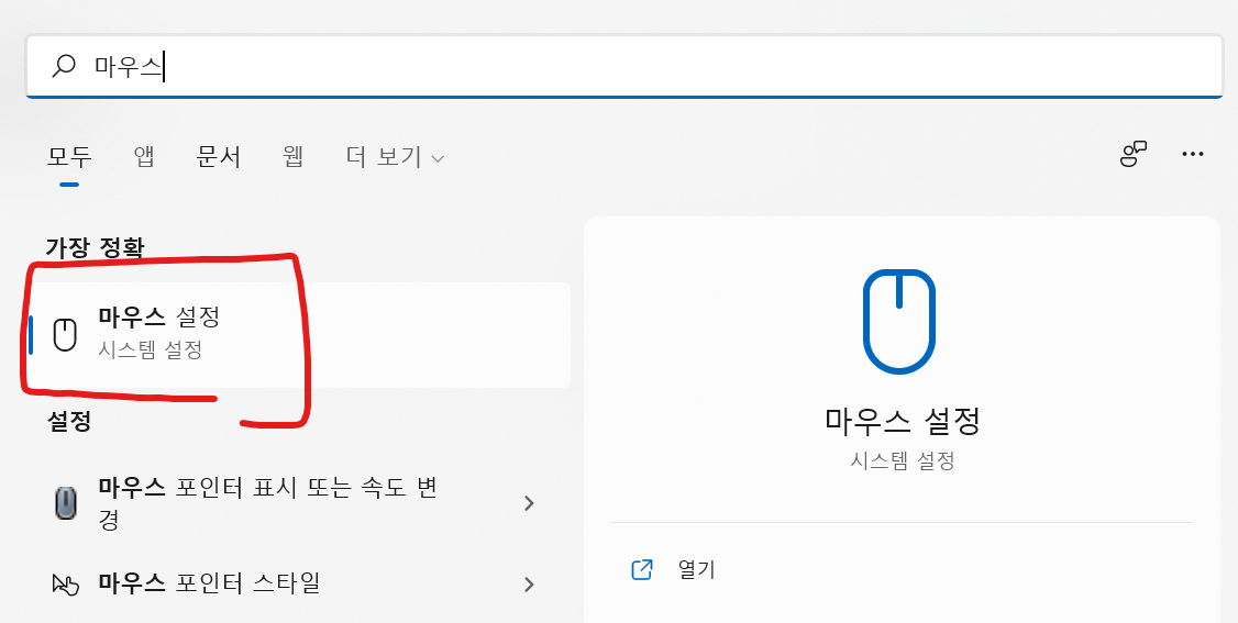 마우스 설정에 들어가자