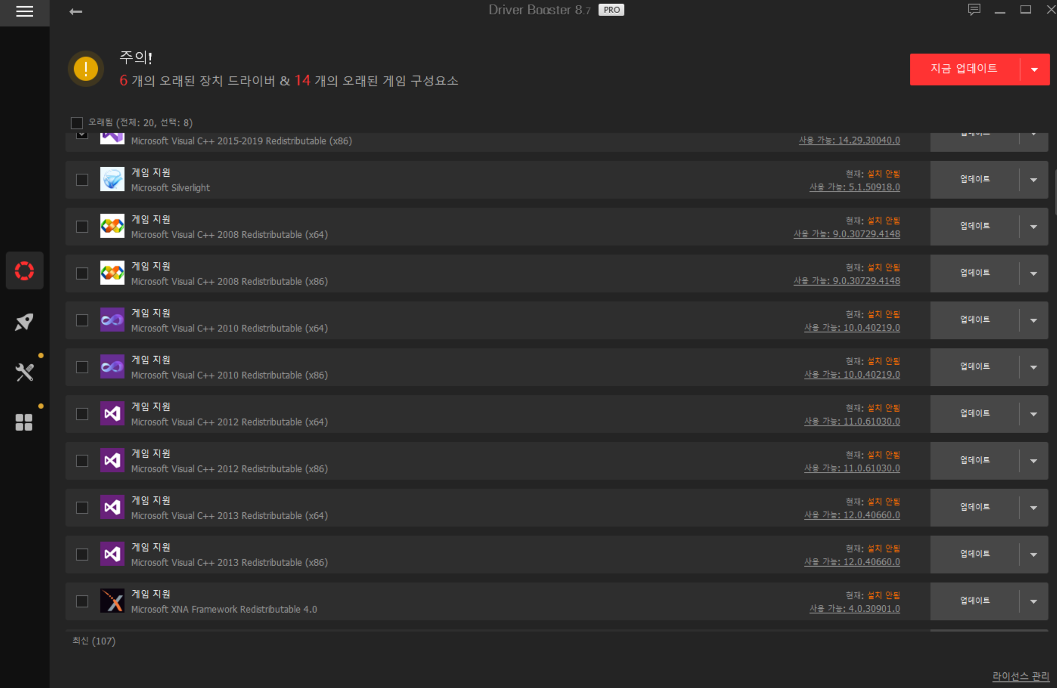 검사를 하면 위와 같이 게임 지원이라는게 있고 각종 오래된 드라이버들이 나올 것이다.
