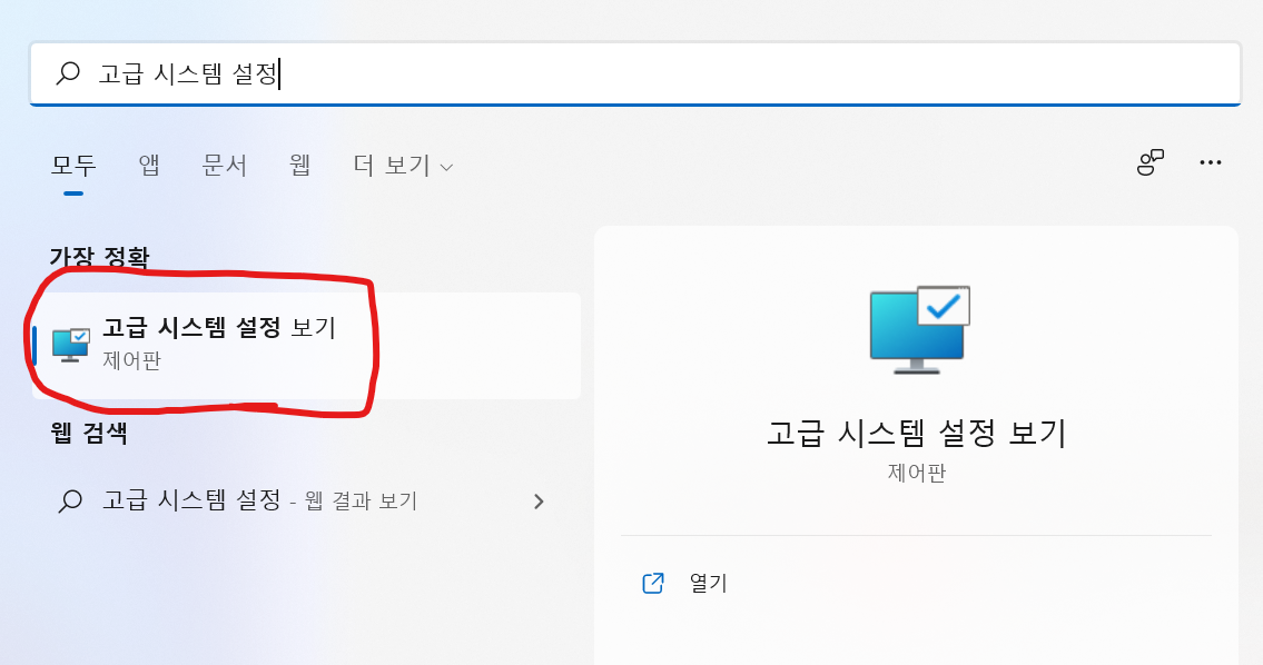 고급 시스템 설정 보기로 들어가자