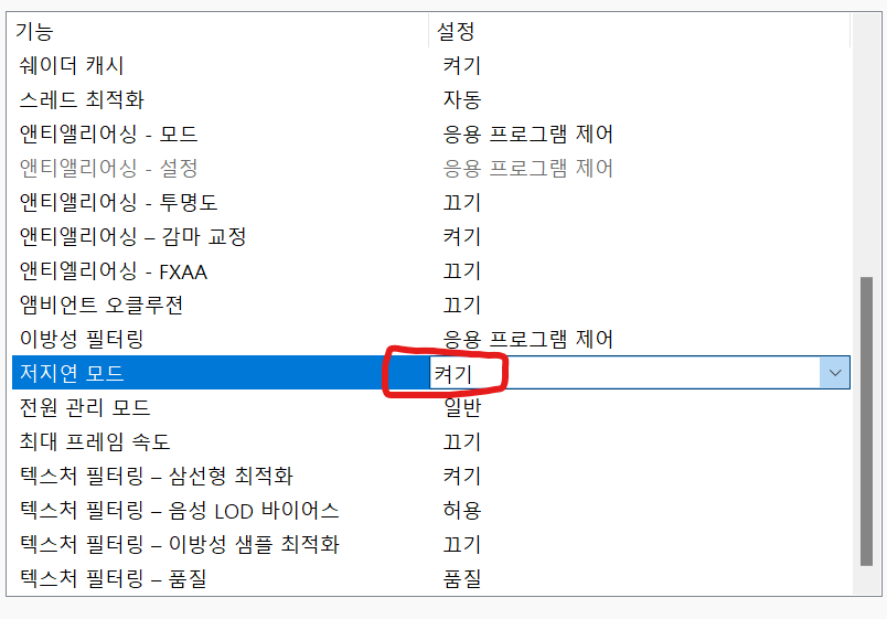 저지연 모드 - 켜기 설정