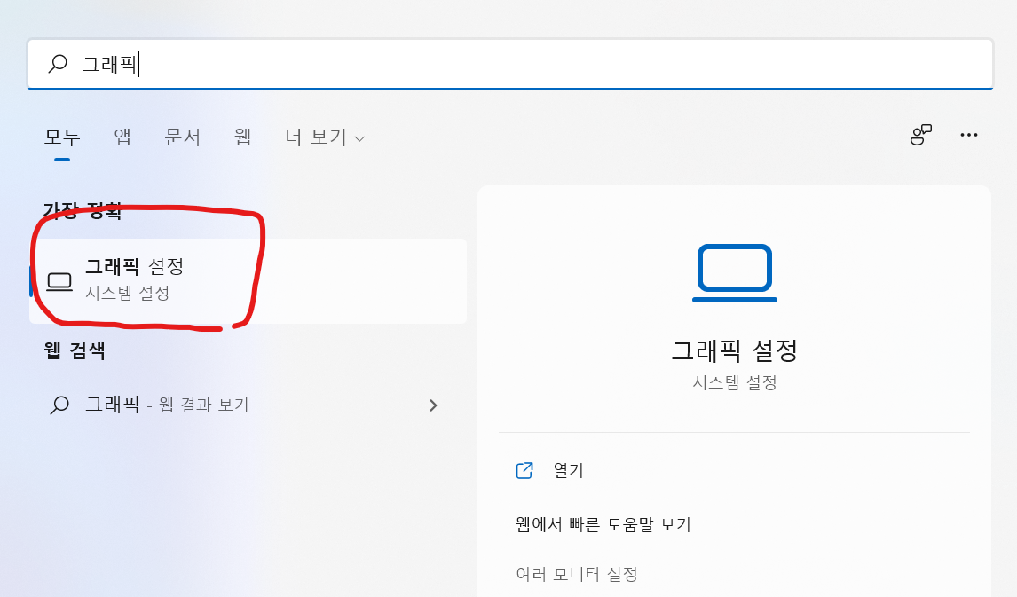 그래픽 설정에 들어간다.