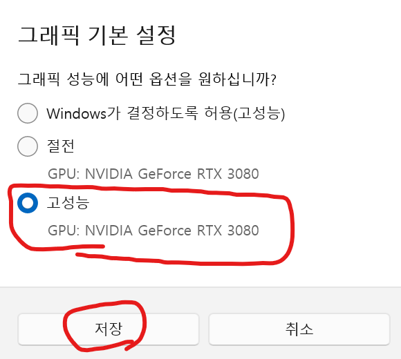 고성능으로 체크 해주자.